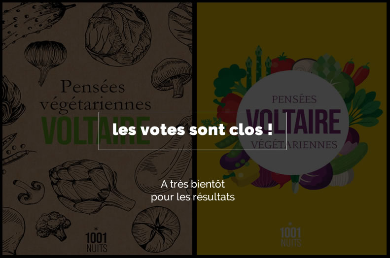Puis nous rééditerons les Pensées végétariennes de Voltaire, avec l’une des deux couvertures ci-dessous, laquelle préférez-vous ?